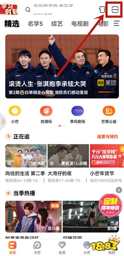 1、打开手机芒果TV,点击首页右上角的扫一扫图标。