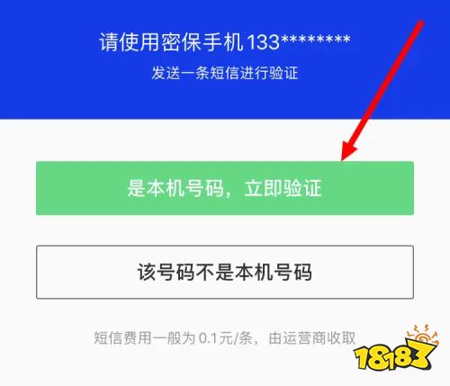 下面需要进行身份验证,点击【是本机号码,立即验证】。