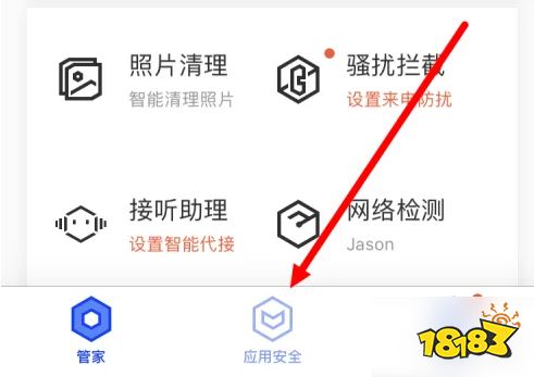 首先在手机上下载并打开腾讯手机管家,并在首页面点击【应用安全】。