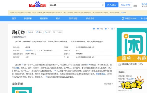 你不知道就去百度,不要自己瞎想,没有一点用。我们百度的话,也可以看到趣闲赚是有百度百科的,这一点,可以让大家知道,人家不是什么乱七八糟的平台。真的要是什么见不得脸的app,巴不得自己被人看不到呢!谁没事,还搞一个百科!
