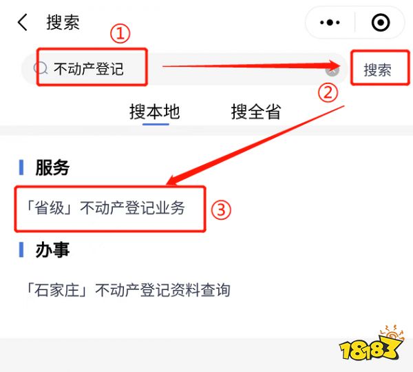 下载冀时办APP,实名认证登录后,搜索“不动产登记”,选择【省级不动产登记业务】