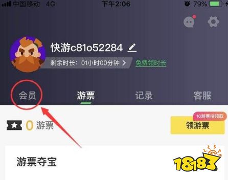 3、进入个人中心,点击左上方标注位置的会员。