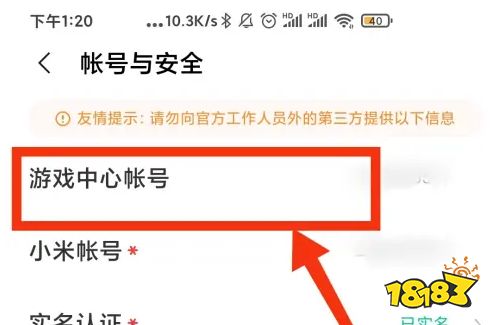 打开账号与安全后,可以看到这个账号的一些基本信息,包括游戏中心账号和小米账号等,到这一步就可以查找到游戏中心账号了 。