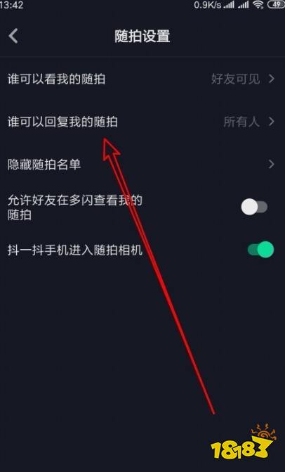 6、进入随拍设置页面后,找到并点击“谁可以回复我的随拍”。