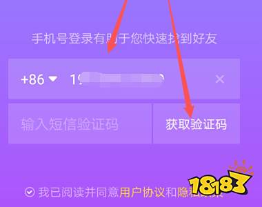 2、点击后进入抖音登录注册界面,直接输入手机号码,然后点击获取验证码,如下图所示。