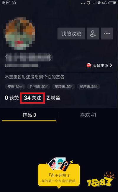 3、在个人界面中找到可以看到自己的关注数,点击一下。