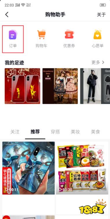 5、进入购物助手界面。在此界面中找到“订单”功能。