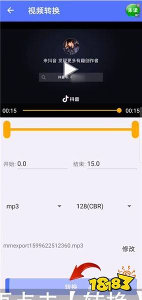 4、选择要转换的视频,选择要截取音乐的时段,再点击【转换】;