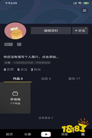 1、抖音中在发布界面中未发布的草稿会保存在草稿箱中,抖音草稿箱的位置在首页面点击右下角我,就会进入到小编这个界面,可以看到本地草稿箱,如下图。