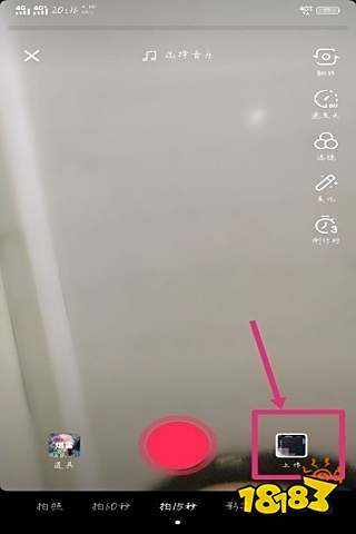 2、点击“+”过后会看到新的界面,这个界面右下方有个“上传”点击即可上传你手机里原有的视频,如下图所示。