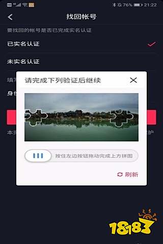 5、点击已实名认证之后会跳出让你输入身份证的界面,输入身份证号码之后,完成验证图片上的内容,就可以获得自己的抖音号了,如下图。