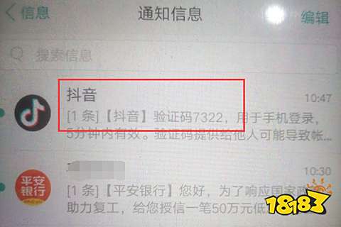 4、接着就可以看到手机收到了抖音发来的短信验证码,如下图。