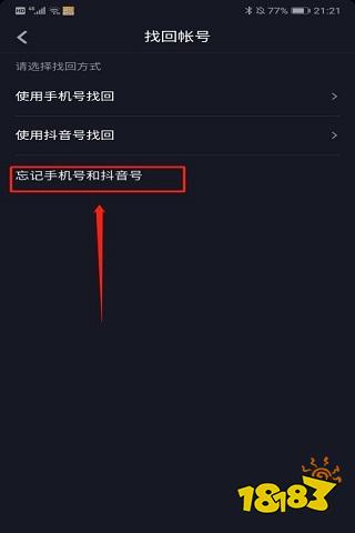 3、进入之后看到有三种找回方式,我们选择第三个“忘记手机号和抖音号”,如下图。