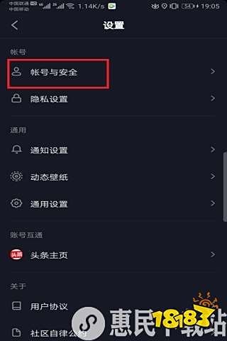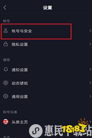 5、进入设置界面之后,点击“账号与安全”,如下图。