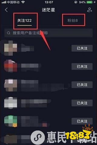 2、接着进入到关注列表,找到自己想要屏蔽的用户的抖音账号,如下图。