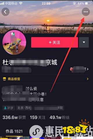 3、点击打开该用户的主页后,点击页面右上角的“三个点”,如下图。