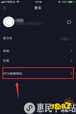 4、接着可以看到在页面下方有一个“对ta隐藏随拍”,如下图。