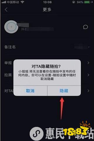 5、点击打开对ta隐藏随拍之后会弹出提示,点击确认即可,如下图。