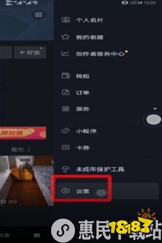 3、点击之后会弹出侧边菜单栏,大家点击最下面的“设置”,如下图。