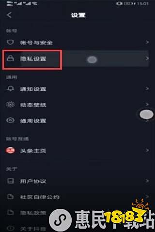 4、进入设置界面之后点击“隐私设置”,如下图。
