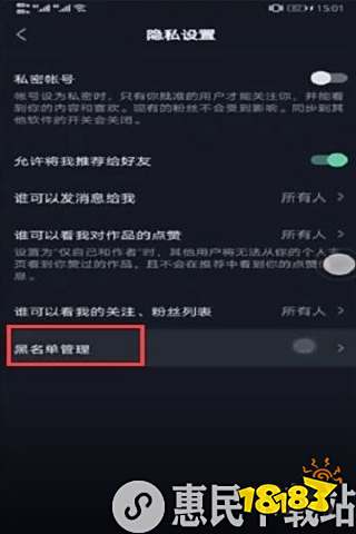 5、进入“隐私设置”页面之后,点击“黑名单管理”,如下图。