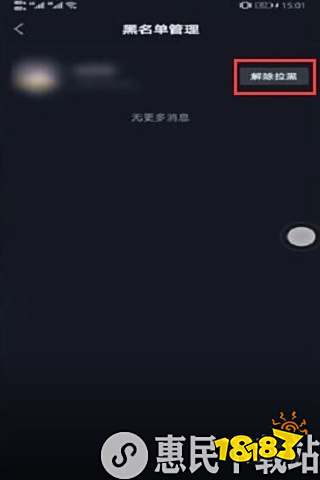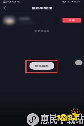 6、在黑名单管理页面,让对方找到你,点击“解除拉黑”,如下图。