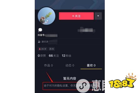 5、接着查看好友喜欢,页面显示“由于对方隐私设置,你无法查看TA的喜欢”,如下图。