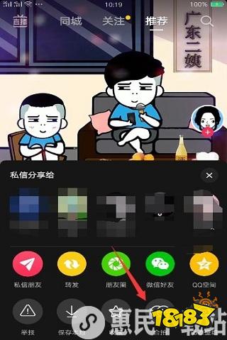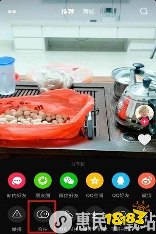 2、点击分享之后,就会在视频下面弹出菜单栏,大家左滑找到“合拍”并点击,如下图。