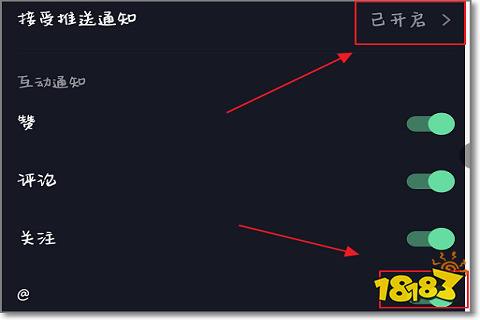 6、最后要做的就是将“推送通知”开启和“@”给勾选上。