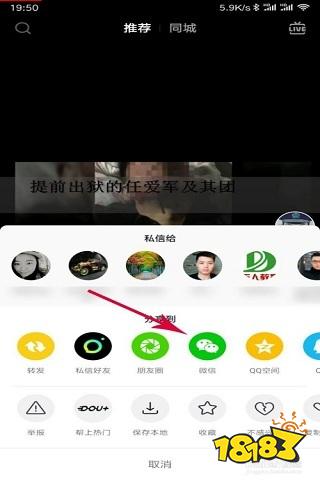 2、微信,微信朋友圈,转发(不具有保存功能),QQ空间,QQ,今日头条,微博等只要是抖音外站的分享端口都可以保存。