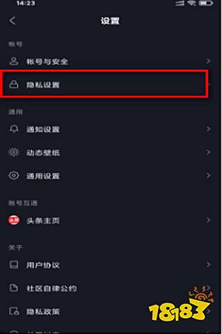3、进入到设置界面之后,找到并点击“隐私设置”,如下图。