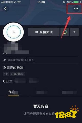 3、打开这个人的账号主页之后,点开页面右上角的“三小点”,如下图。