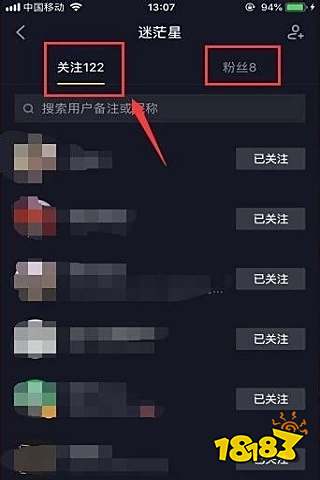 2、接着进入到关注页面,找到你想要屏蔽的那个人的抖音账号,如下图。