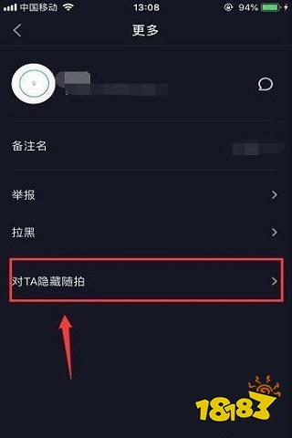 4、进入到更多页面之后,在页面下方有一个“对TA隐藏随拍”,如下图。
