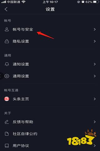 3、进入到设置界面之后,可以看到一个“账号与安全”点击它,如下图。