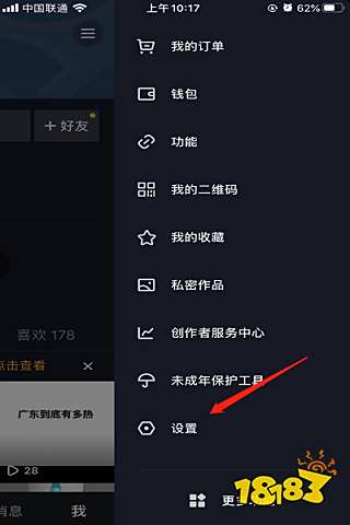 2、点击之后会弹出侧边菜单栏,点击“设置”,如下图。