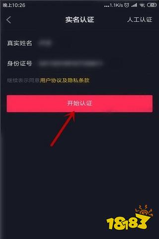 6、进入到实名认证界面之后,输入姓名身份证,点击“开始认证”,如下图。