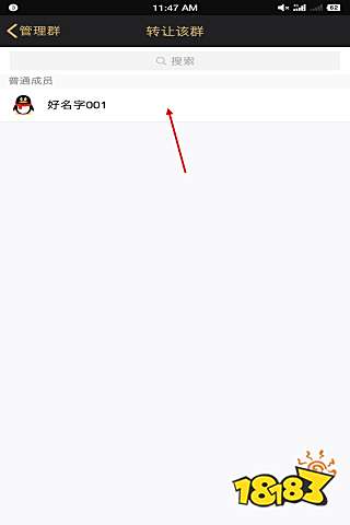 5、这时候会出现该群的全部成员,我们只需要选择我们想转让的人即可成功转让。