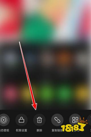 4、点击之后会在视频下方弹出菜单栏,滑动最下方的图标,找到“删除”按钮,点击“删除”,如下图。