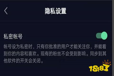 3、接着将“私密账号”开启,这样就可以对发布的作品进行隐藏了,如下图。