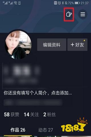 2、进入到个人主页之后,点击右上角的“手”的标志,点击它,如下图。