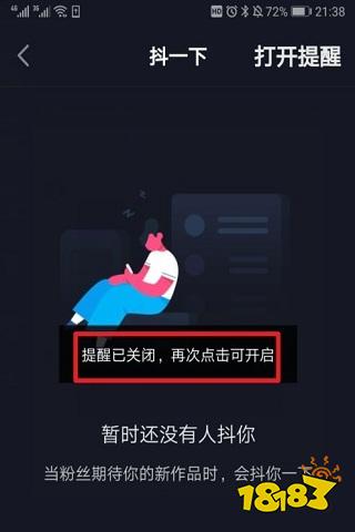 3、点击后进入到主页,看到了“抖一下”,这个功能就是粉丝想提醒你出新作品时,就抖你一下,如下图。