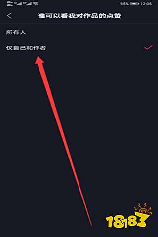 6、然后点击“谁可以看我对作品的点赞”选项,进入谁可以看我对作品的点赞页面,选择“仅自己和作者”,别人就看不到作品,然后无法进行评论和点赞了,如下图。