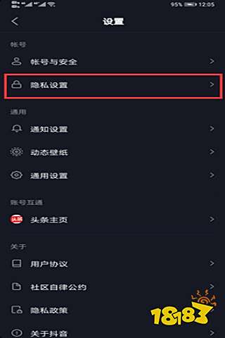 4、进入到设置界面之后,点击“隐私设置”,如下图。