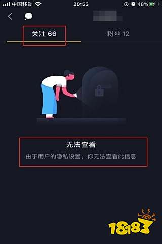 7、再点击“关注”进入,页面显示“无法查看,由于用户的隐私设置,你无法查看此信息”,如下图。