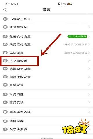 2、在设置页面,点击进入“拼小圈设置”选项,如下图。