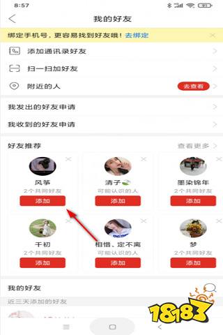 5、打开页面后,选择要添加的好友,然后点击添加,如下图。