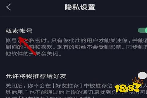 4、然后在打开的页面中,找到“私密账号”并点击关闭它,如下图。