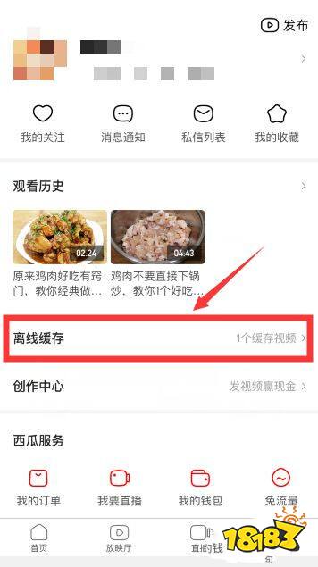 第五步:个人中心页面中,点击离线缓存。