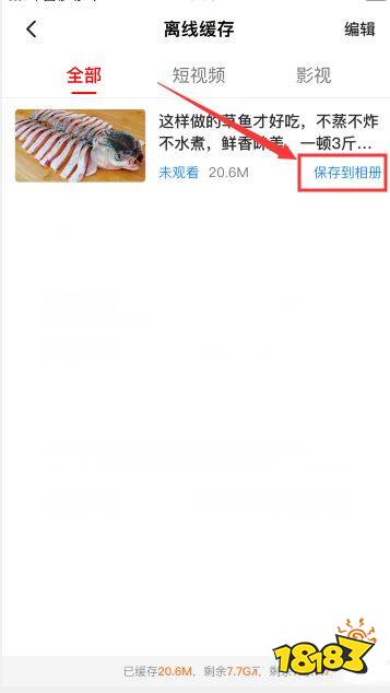 第六步:离线缓存中,可以看到刚才下载的视频,点击保存到相册。